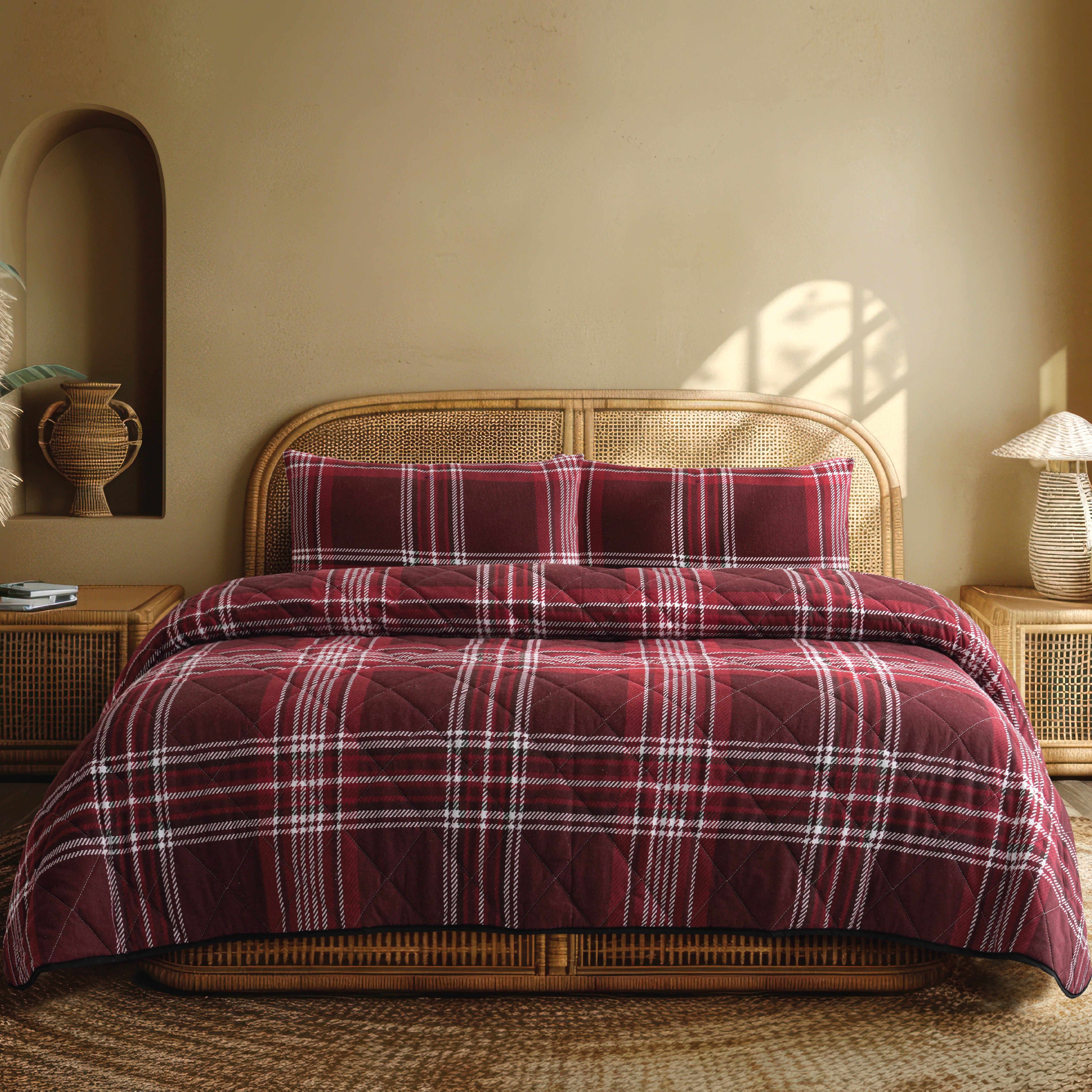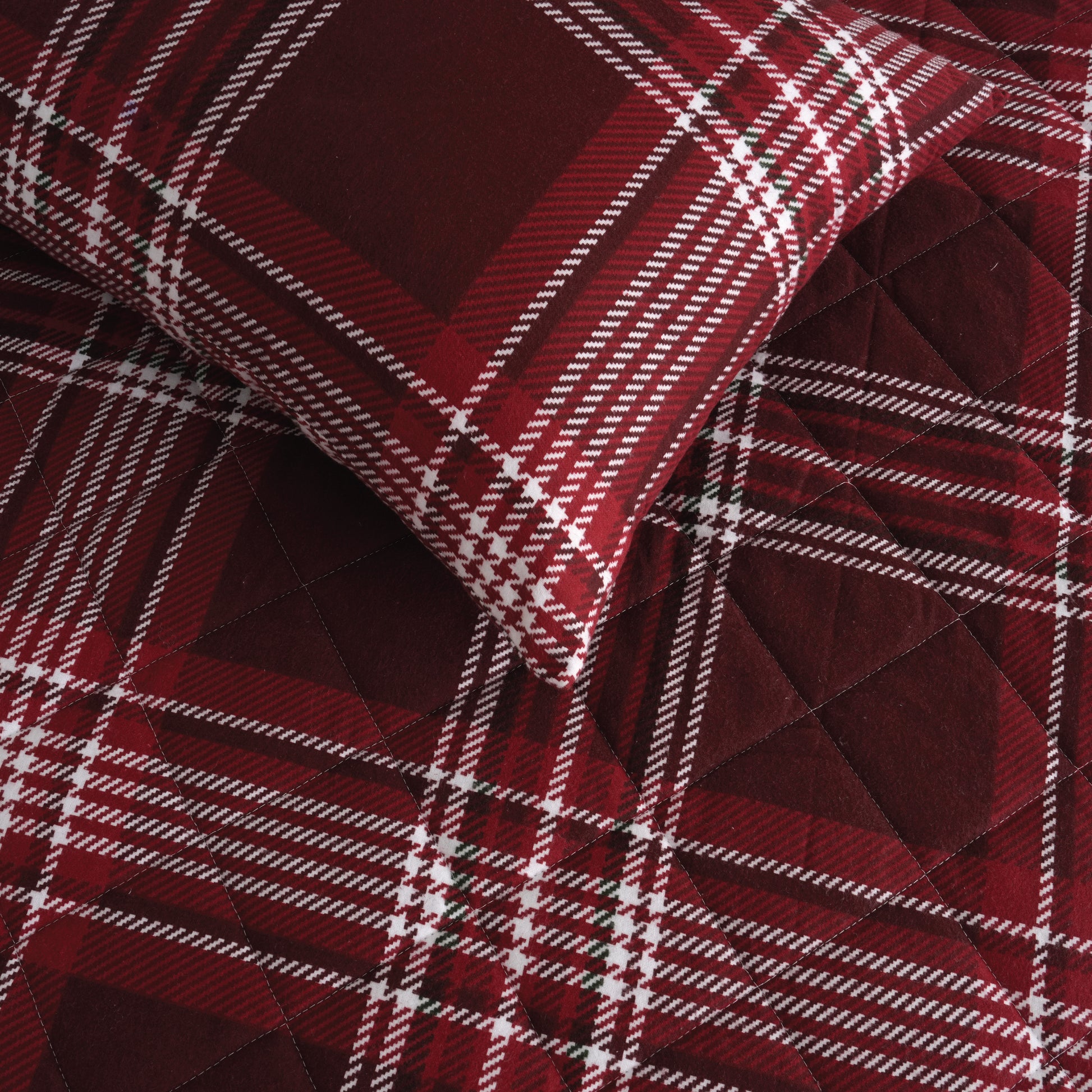 Crafted from ultra-soft flannel, the fabric offers exceptional warmth and a cozy hand-feel. The quilted finish adds structure and durability while enhancing the overall comfort and elegance of the set.
